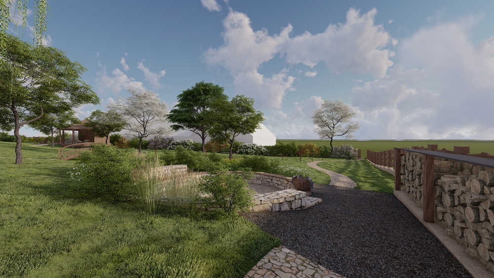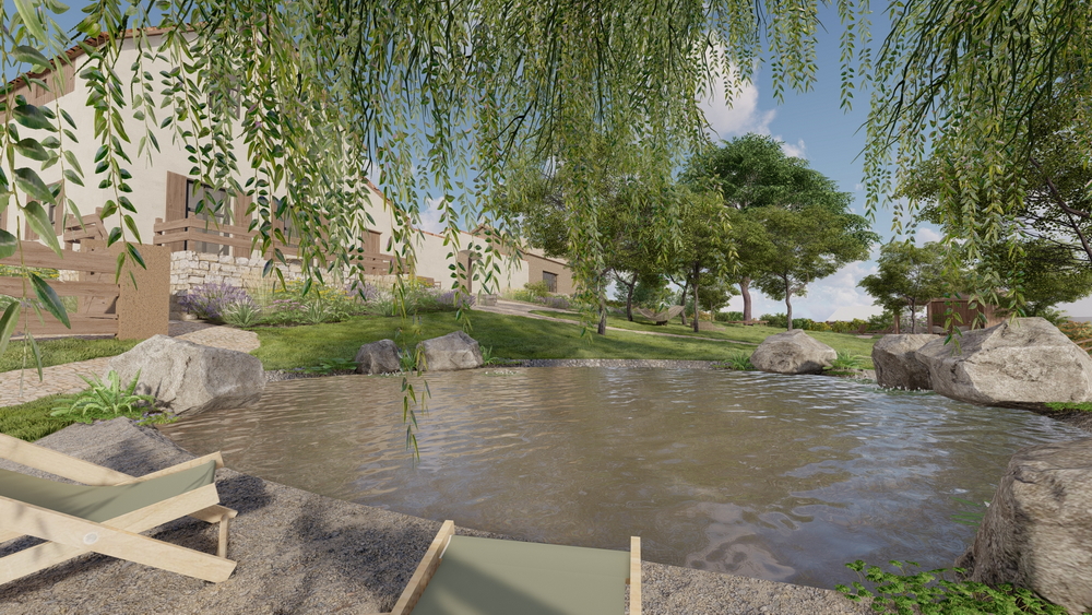 Důležitou součástí je také venkovní areál. Počítá se s přírodním koupalištěm o ploše zhruba 250 m², rozlehlou zahradou a dalším zázemím pro společné chvíle. Díky prostoru a kapacitě je statek vhodný i pro svatby, oslavy, setkání přátel nebo menší firemní akce – vždy v komorním duchu, s důrazem na kvalitu a pohodovou atmosféru.